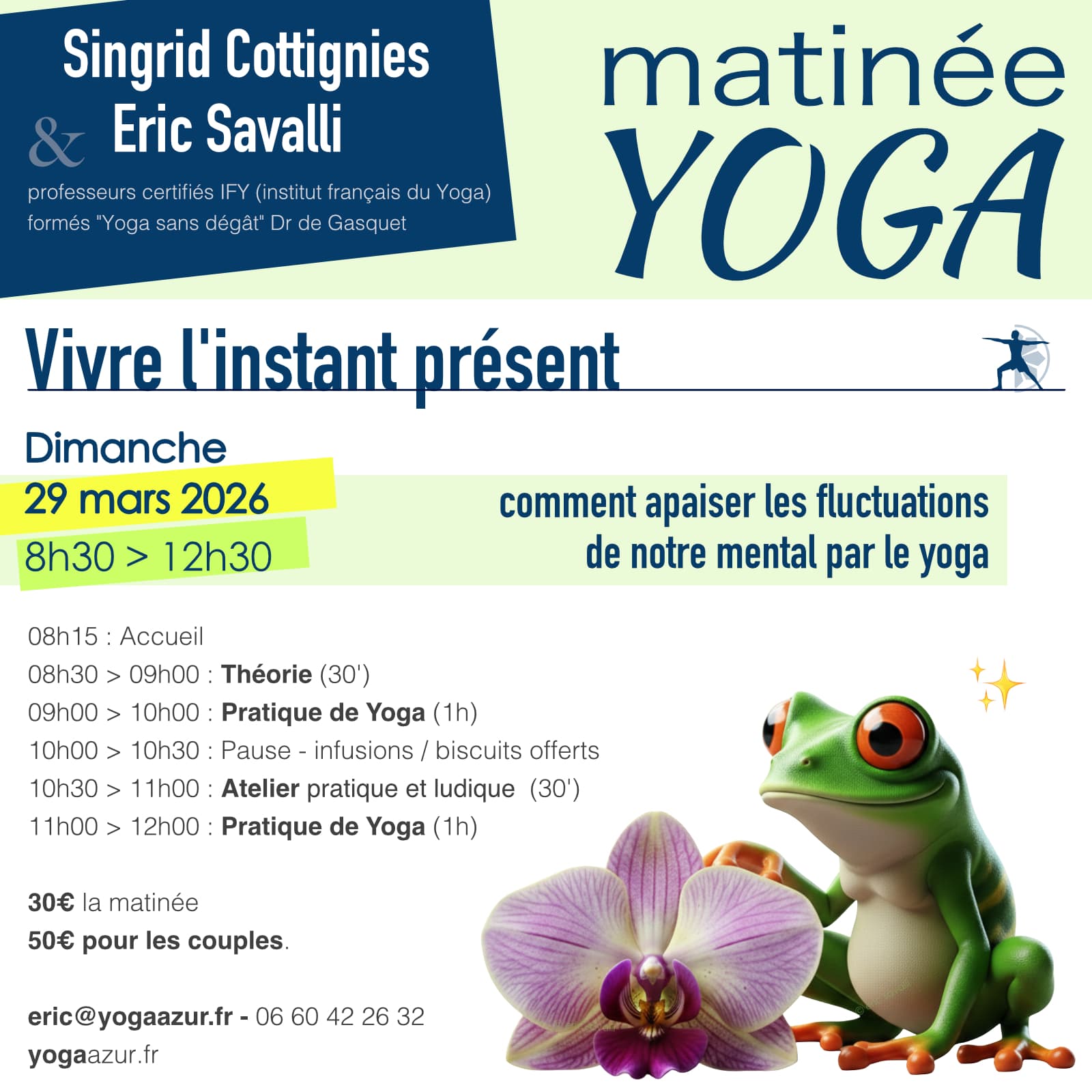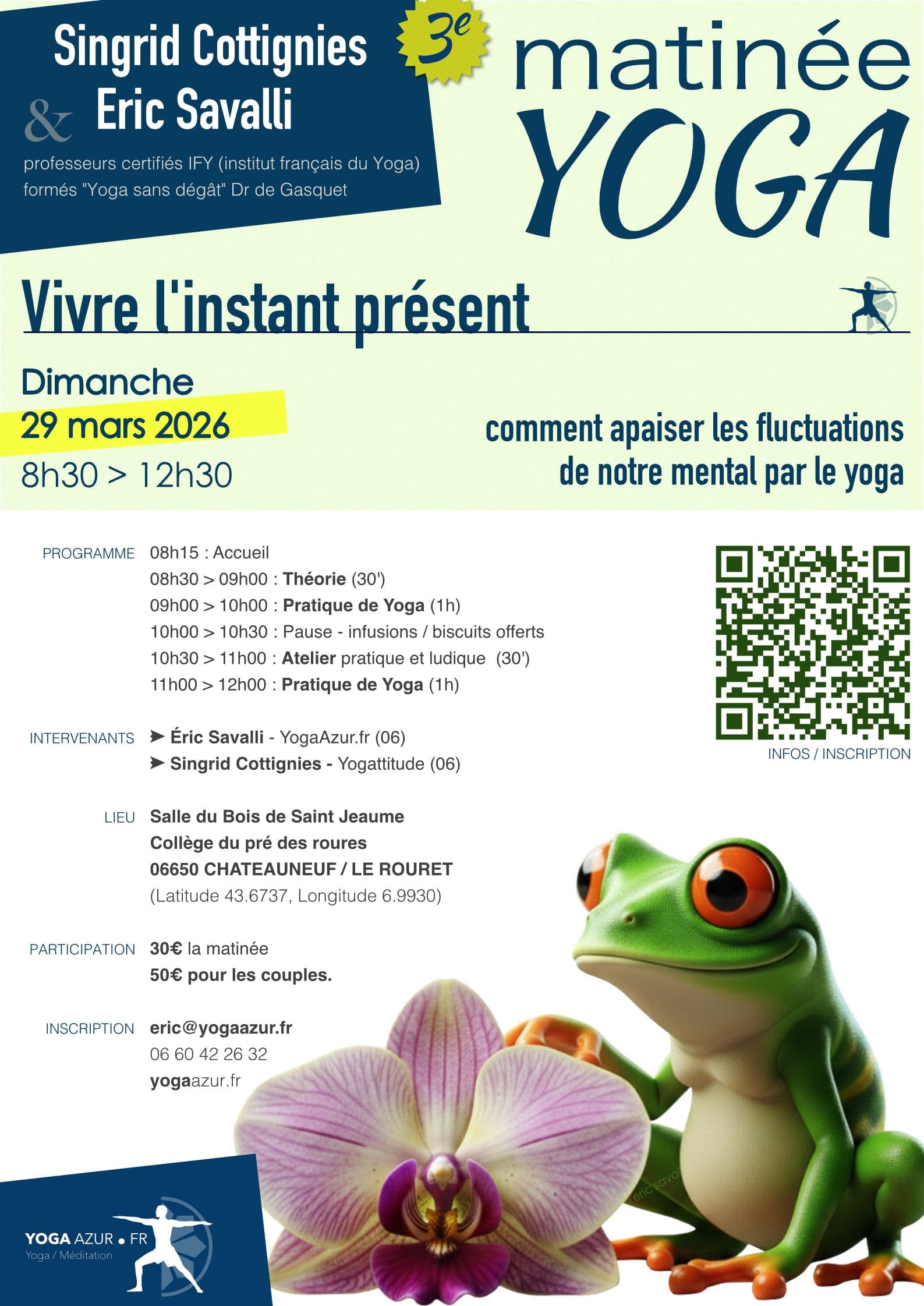 Venez nombreux et nombreuses, le dimanche 29 mars, pour prendre le temps de ralentir, d’affiner votre écoute et de cultiver un mental plus paisible, dans le cadre de notre matinée thématique annuelle.